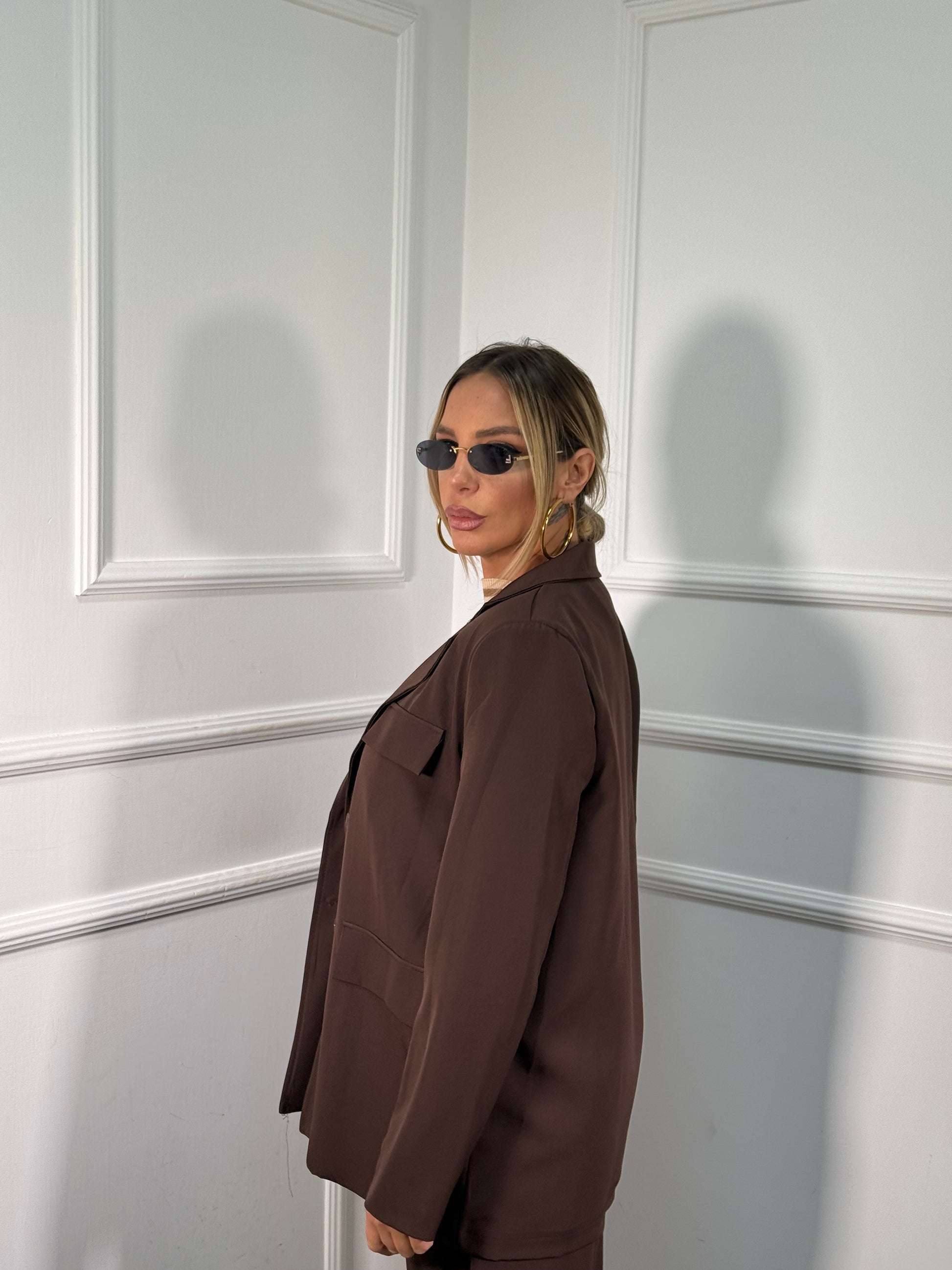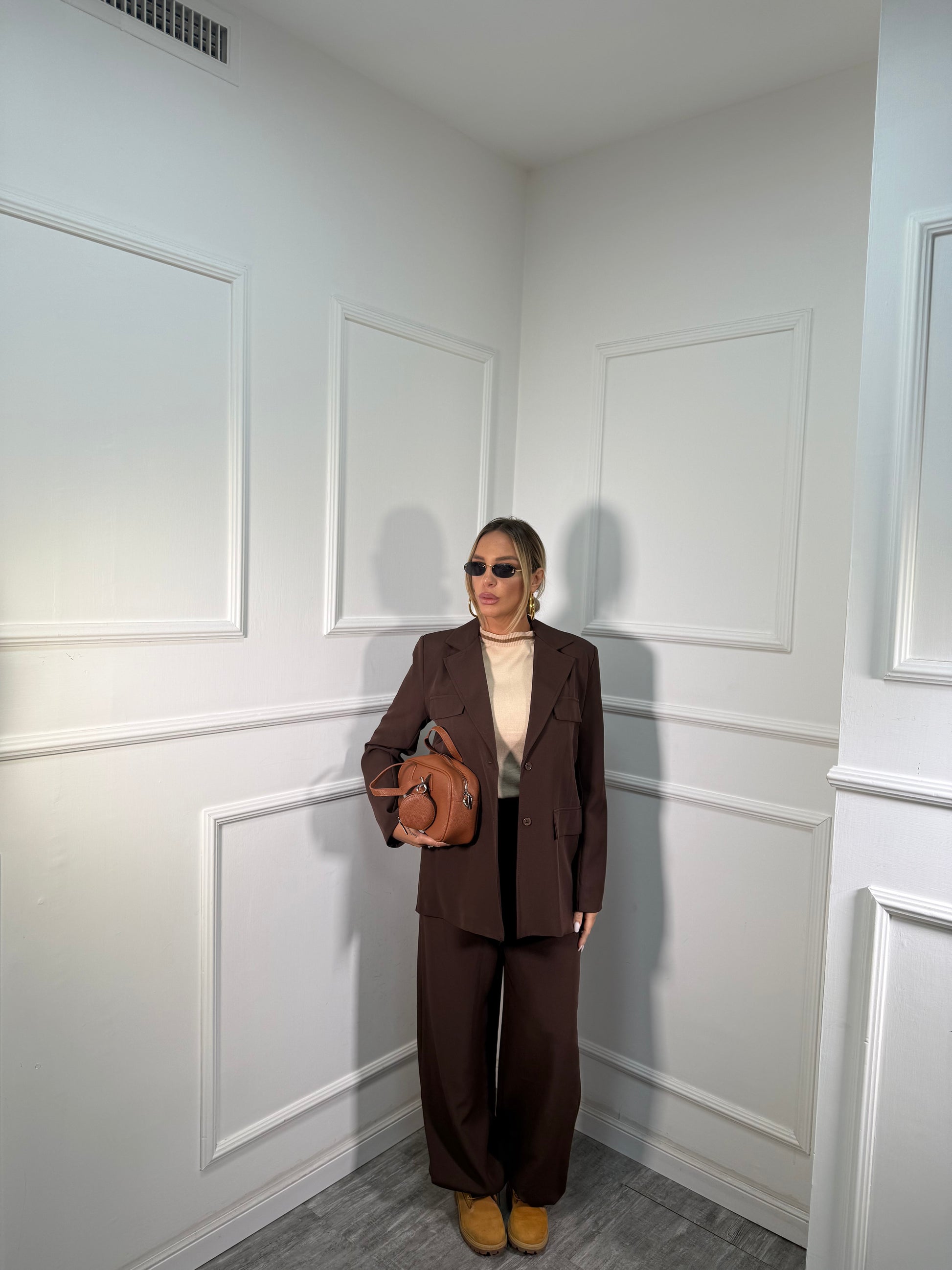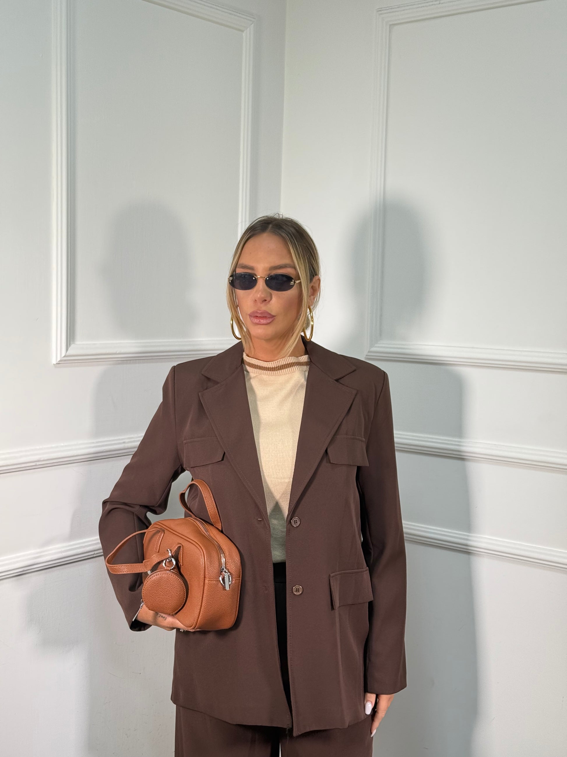 Tailleur composto da blazer chiusura doppio bottone, spalline imbottite, foderato