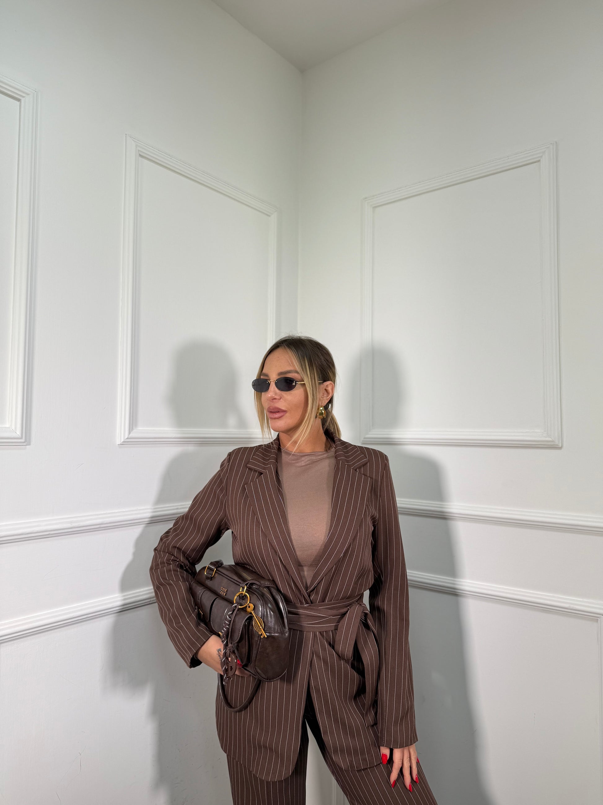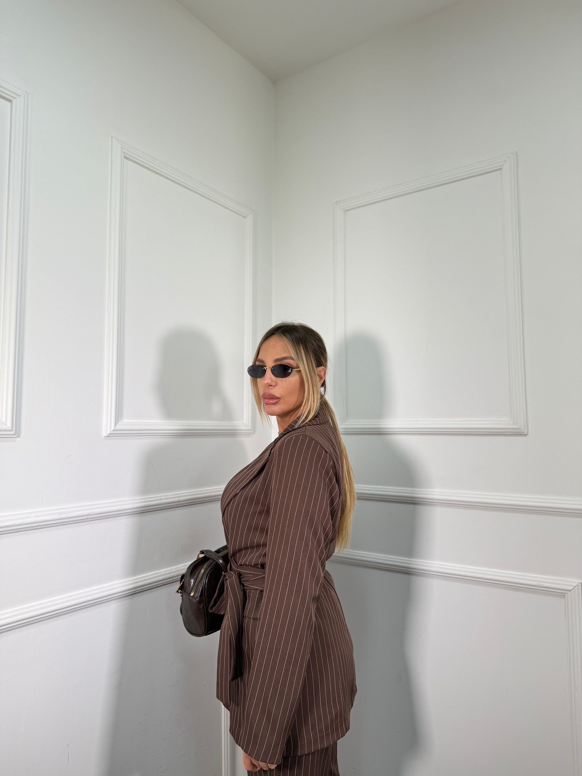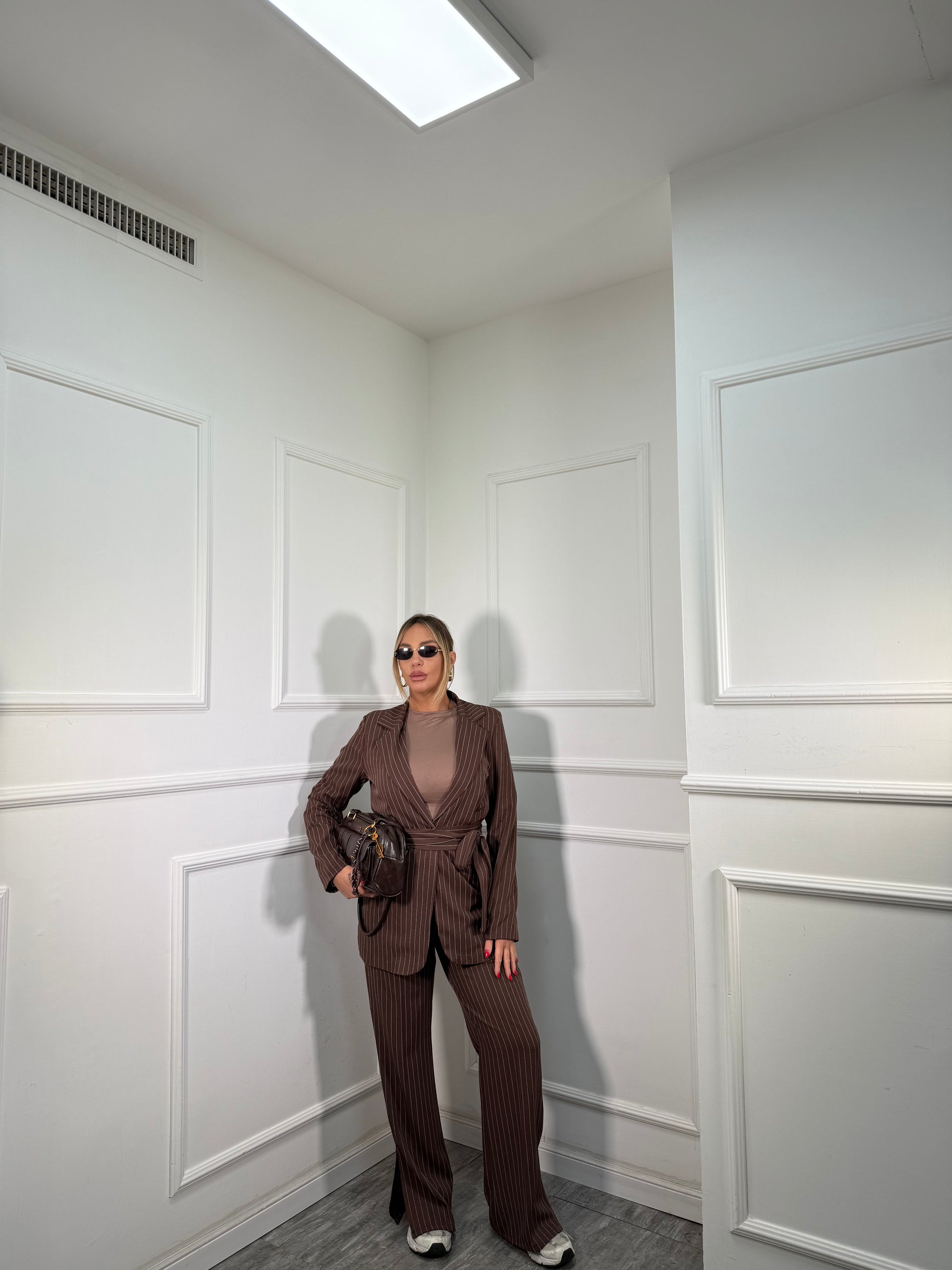 Tailleur gessato Katrin cacao 30575
