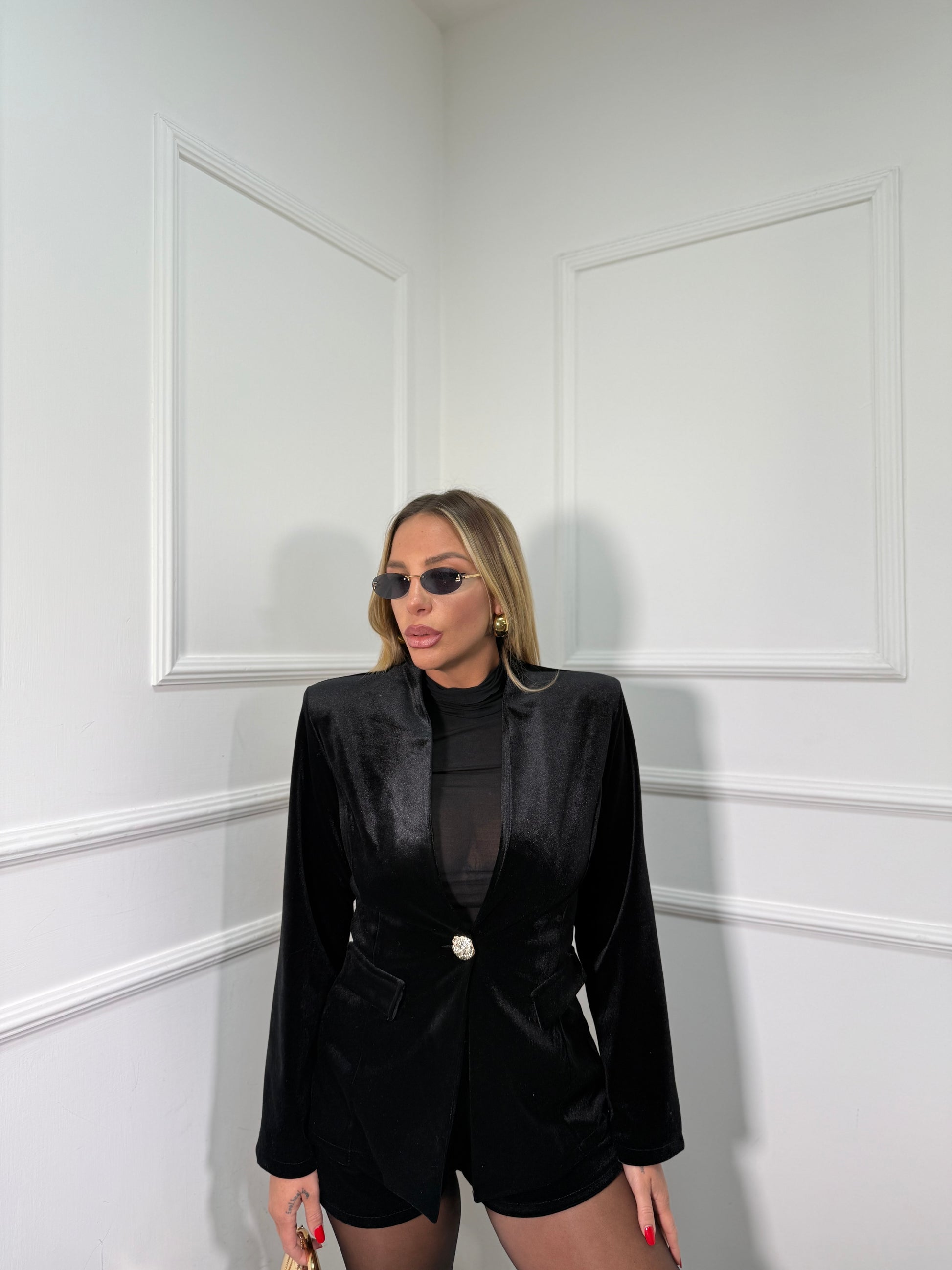 giacca con spalline e chiusura un bottone effetto martellato