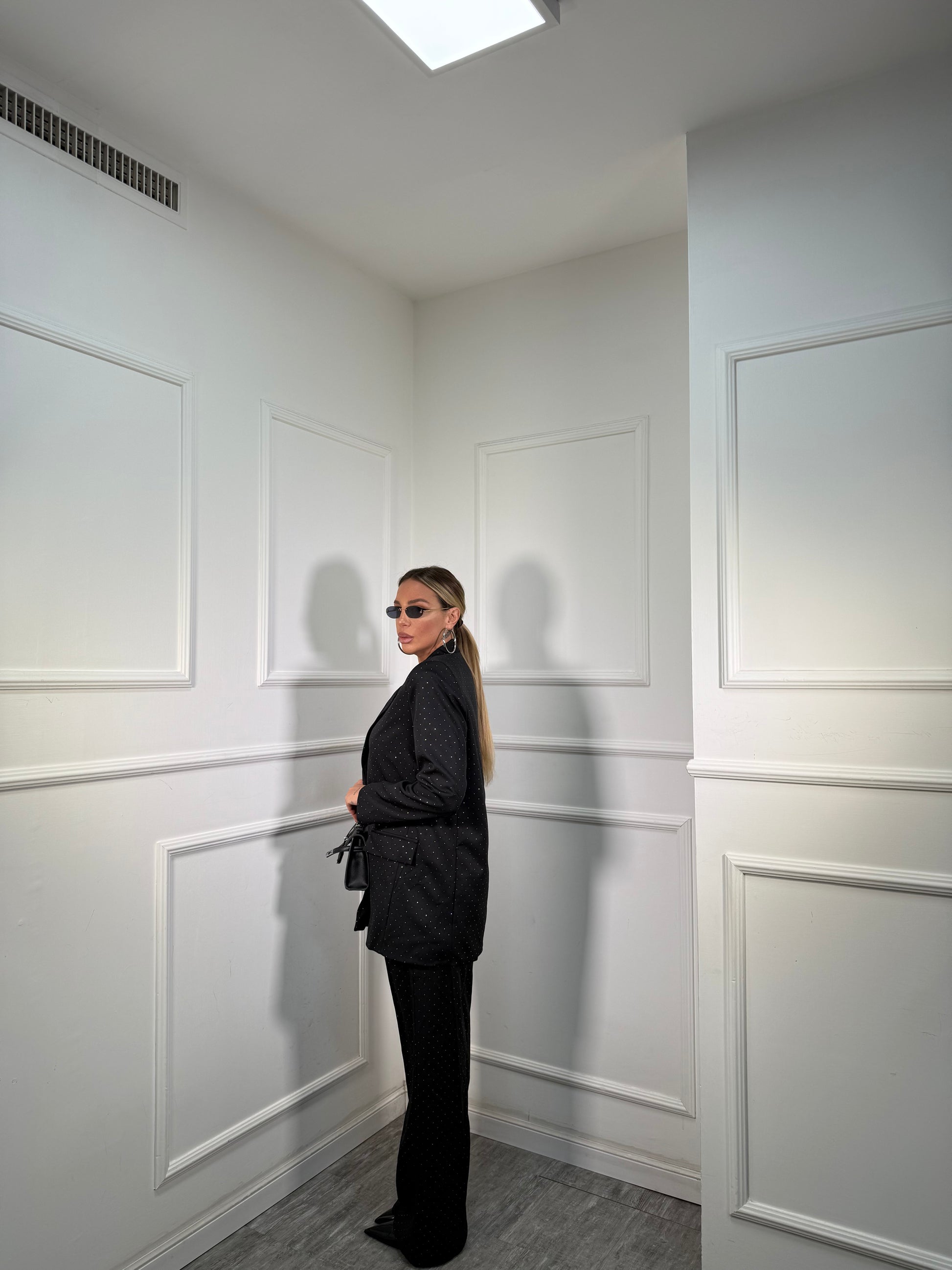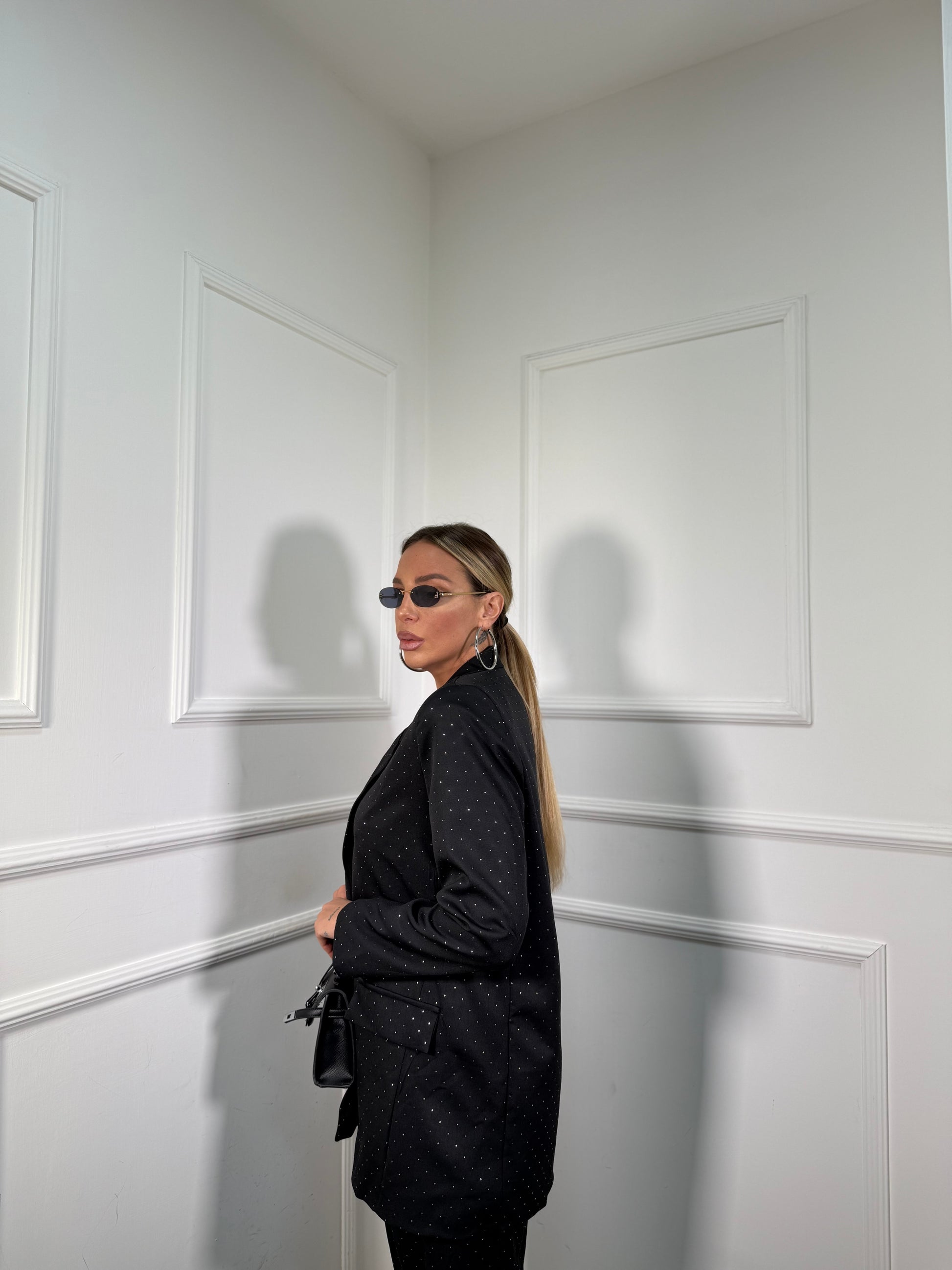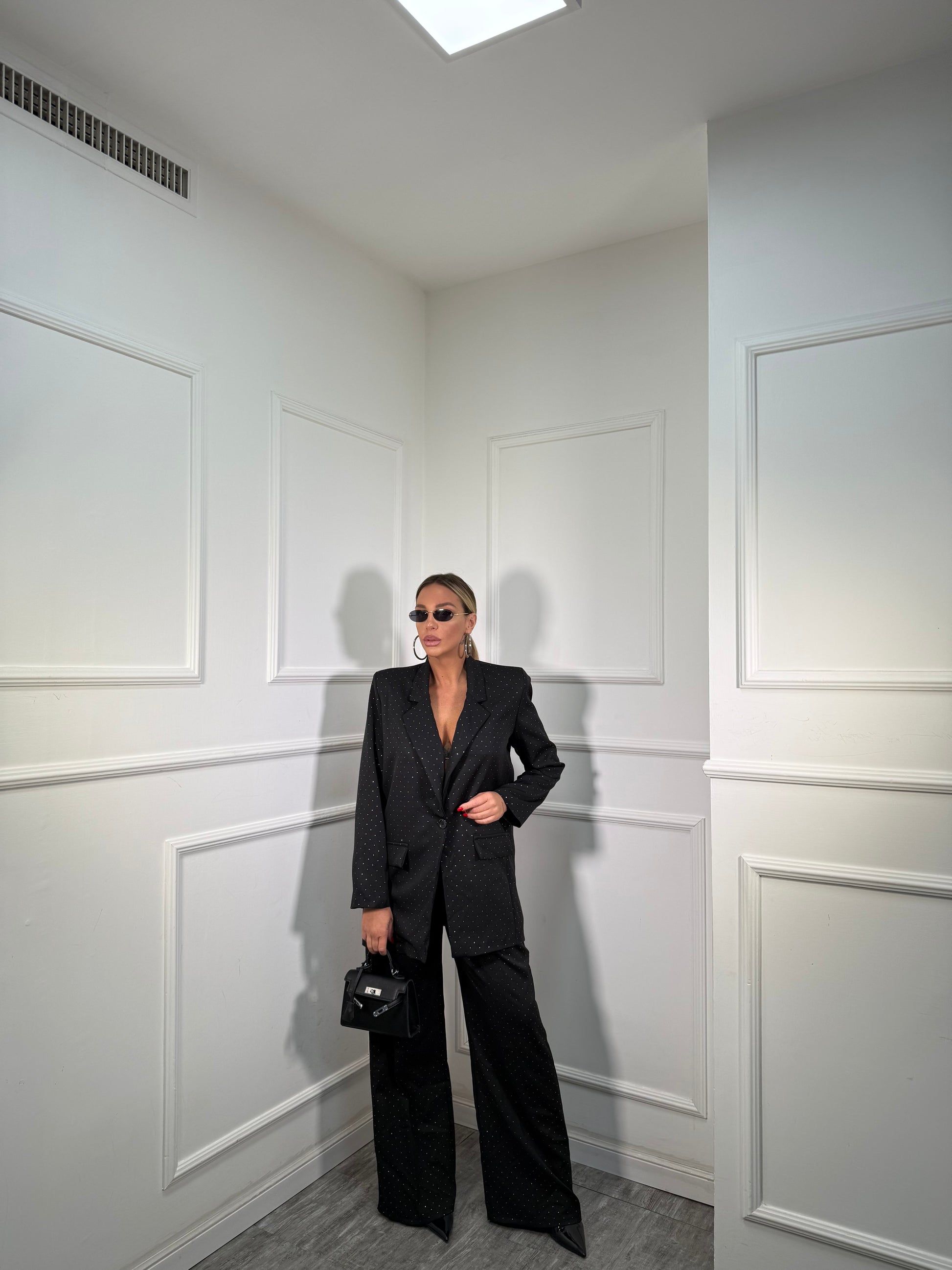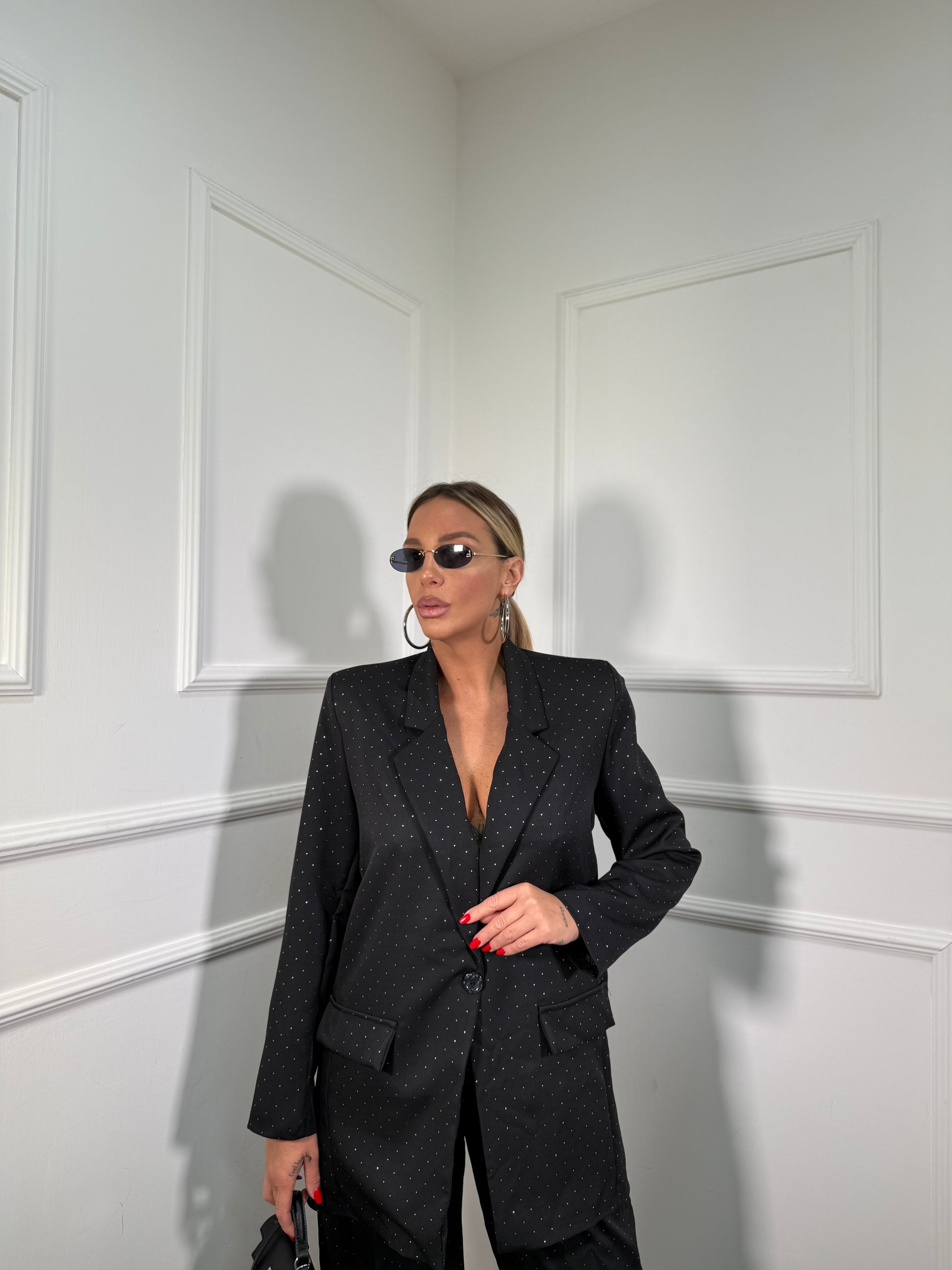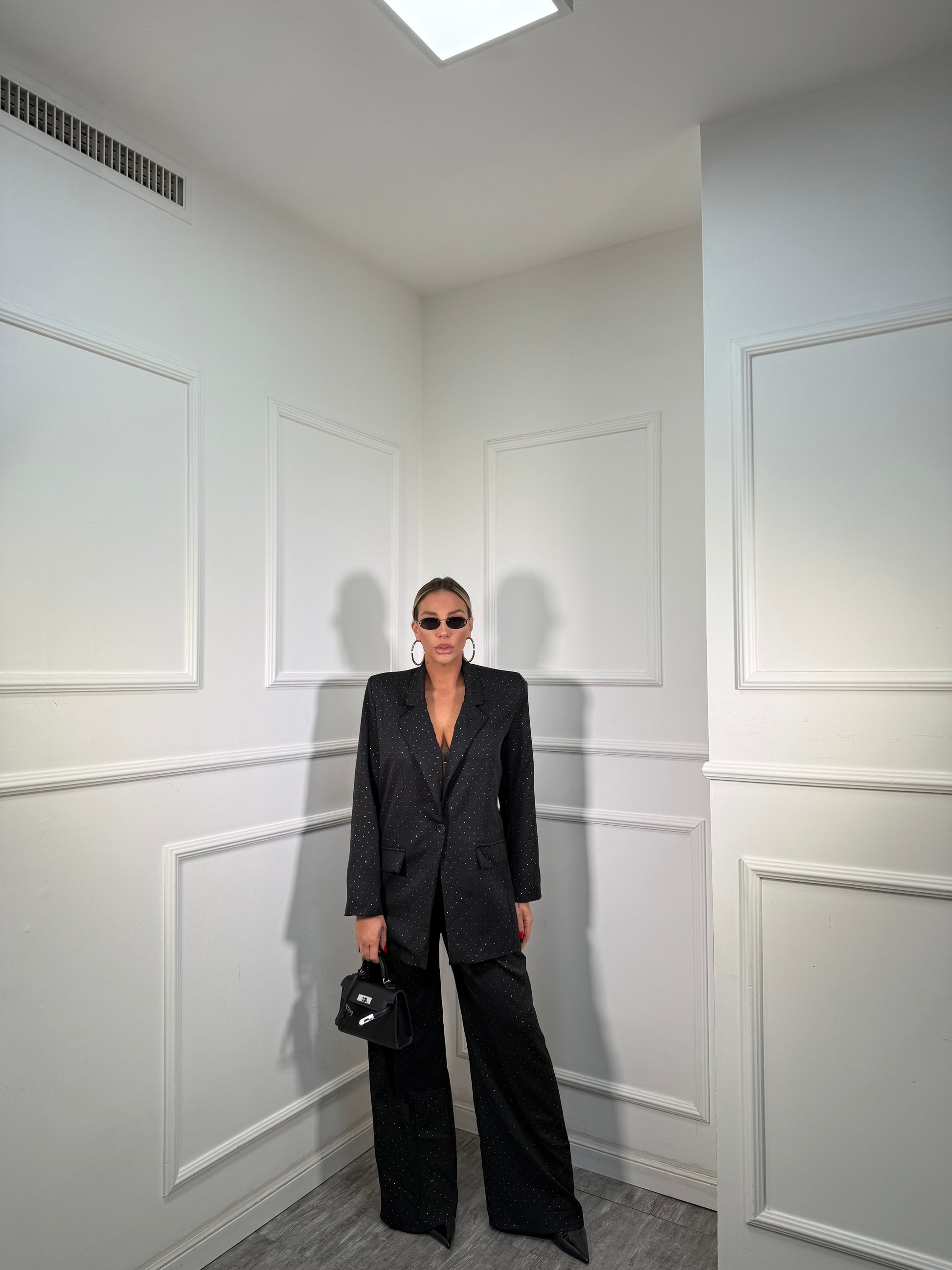 Tailleur oversize micro strass Skyline nero 30096/97