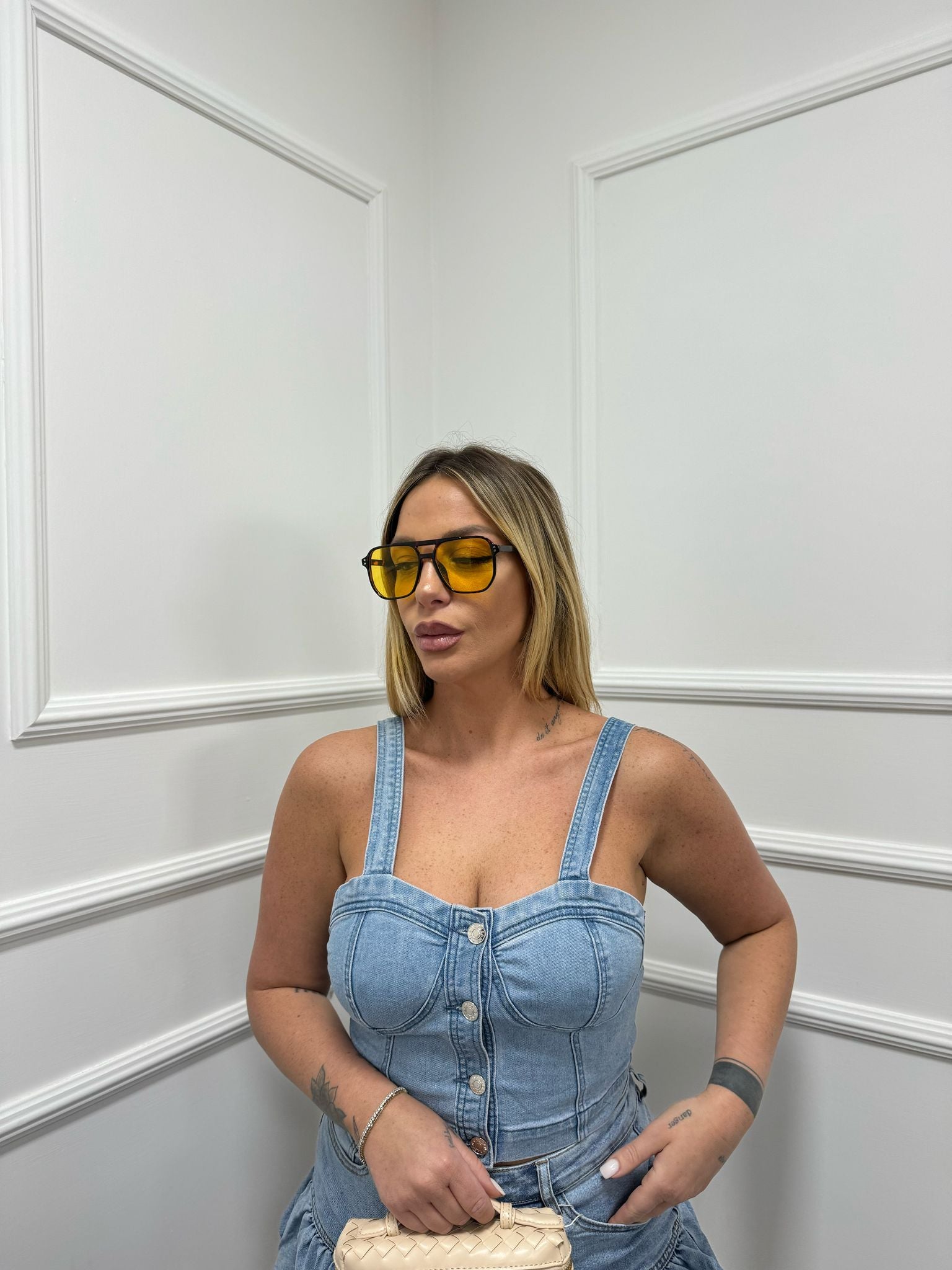 Top bottoncini in denim lavaggio chiaro