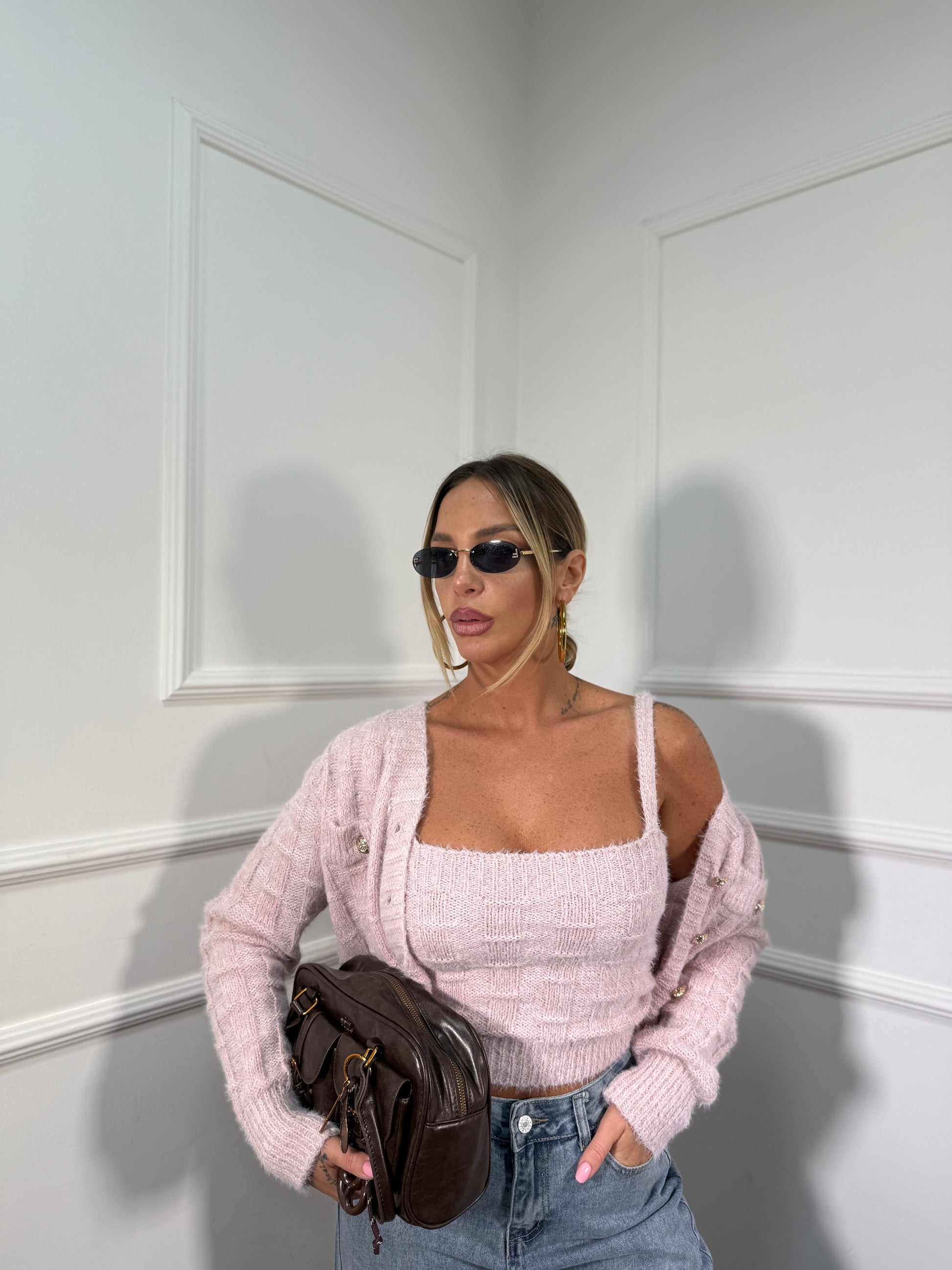 Twin-set in misto lana Lily rosa blush wz134